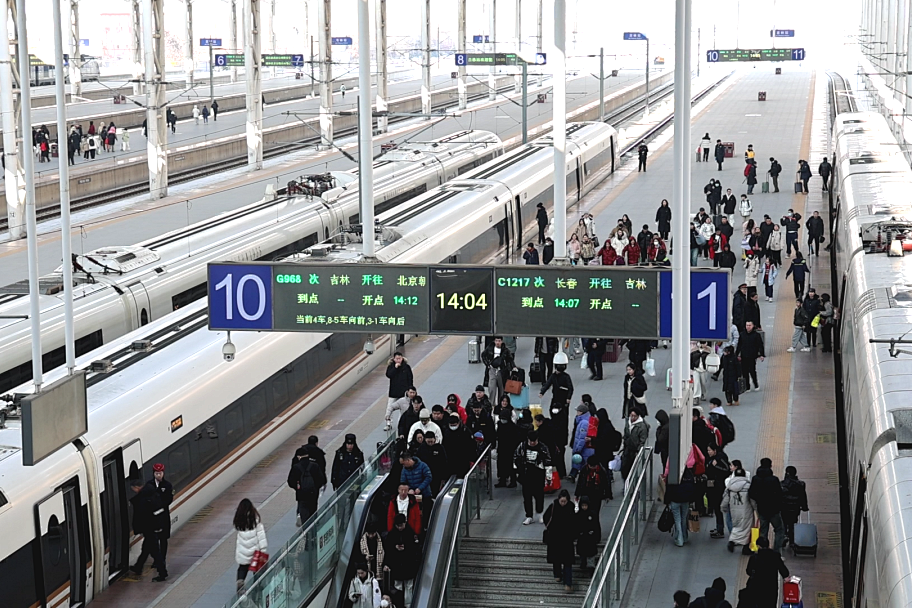 春节假期时刻,为了更好功绩乘坐高铁前来不雅赏雾凇的游客,吉林站在安检、售票、站台等重要规律增派东说念主员,动态调治检票时辰。车站志愿者在候车区为游客提供防滑教导、换乘指点与重心帮扶功绩,助力游客顺利出行。