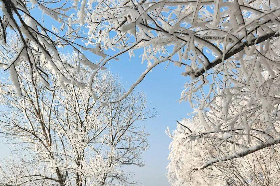 雾凇是冰冷天气里凝结在树枝上的白色冰晶,需要在气温低于零下20摄氏度、空气湿度饱和高以及风速适中的条目下武艺变成。