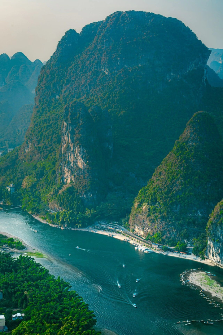 漓江:八十三公里的山水长卷 漓江是桂林山水的魂魄。自桂林至阳朔,八十三公里水程,宛若一轴永无限头的山水长卷。江水败露碧透,反照着两岸千峰屏立,雨季时节霏霏缭绕其间,宛如瑶池。