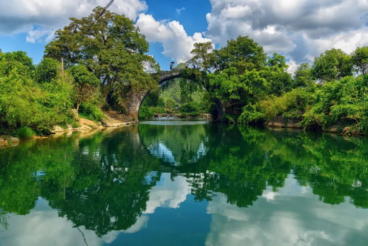 遇龙河:古诗里的静谧时光 遇龙河,是漓江极好意思的一处符号。青山远处,峰影杂沓,两岸绿树葱茏,桥下碧水晃动。泛舟江上,仿佛走进了古诗中的寰宇,手艺在这里变得缓慢而选藏。