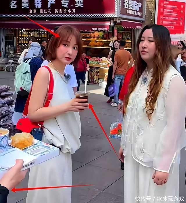 她面部的妆容较为油腻,在阳光的照耀下显得不够当然。