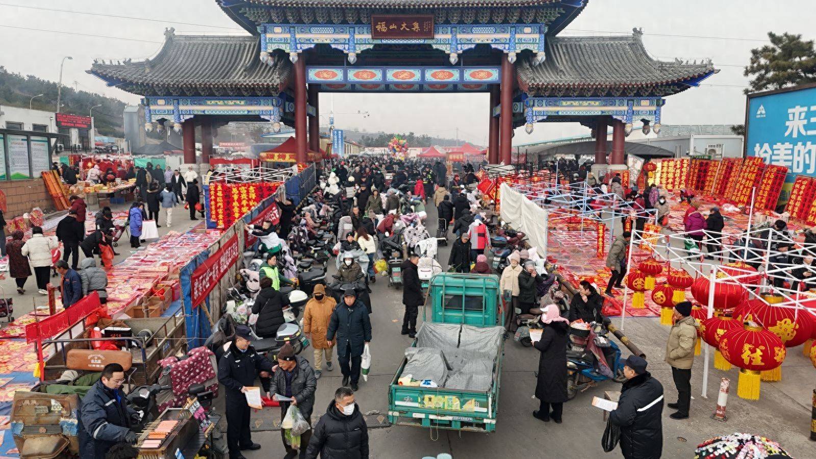 腊月二十三朔方小年,黎明六点,天刚蒙亮,烟台福山大集已是热气升腾。