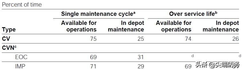 总共从戎周期内CV(老例能源)可用率为74% CVN(核能源)是 69%(尼米兹级)