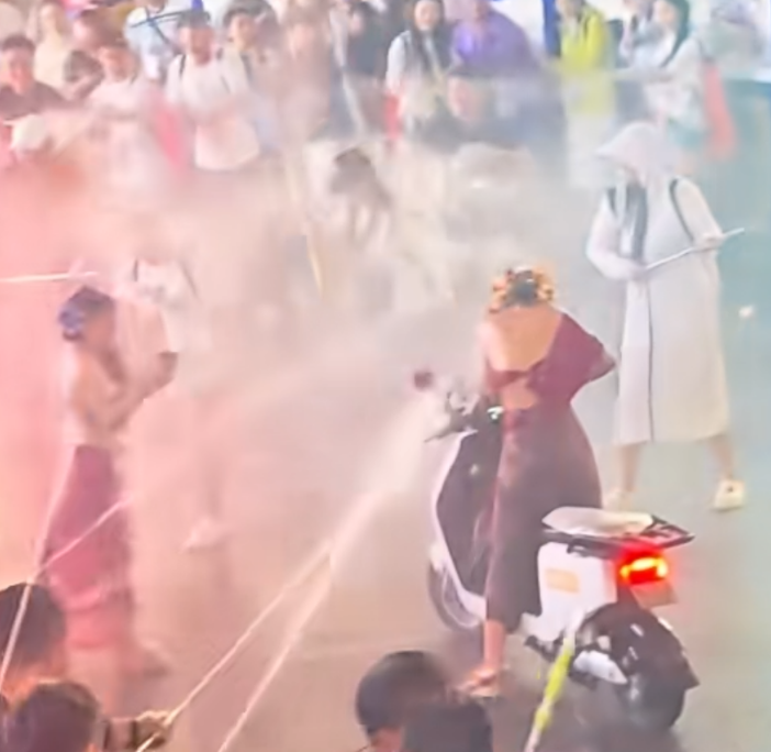 辩驳区有当地市民线路,泼水看成是为了抒发祝颂,当地东谈主会自愿商定分袂骑车的东谈主进行泼水,以防护发生危境,对女性也会尽量和善对待,视频中的作念法赫然已卓绝已往圭臬,看成过于平庸暴力,属于纳闷看成。