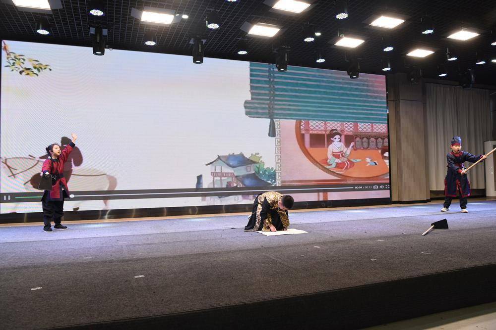 学生饰演教材剧《大禹治水》。时萍萍摄